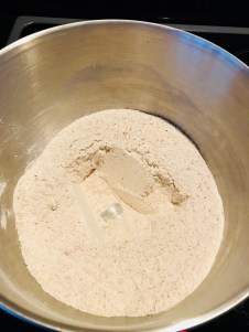 Weigh up the flour as close as you can to the 200g and 250g as indicated above and mix them by hand while they are dry (make sure your bowl is dry for this).