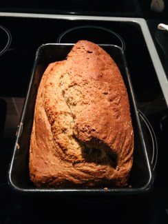 When the time is up, carefully remove the tin….remember….Hot things burn!! Give the bread a tap with your fingers. If it sounds hollow, then it is baked all the way through.