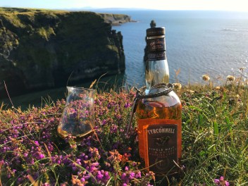 I plan out my reviews in advance so when it came to the Tyrconnell’s turn, I was heading home to Kerry in some glorious weather.  I called into my good friend Mike Flahive at Bromore Cliffs just North of Ballybunion. A fantastic cliff walk in all weather but there is something truly spectacular when the sun is shining and the water is calm. Obviously bonus points that it is in Kerry and as an aside, since I’m a HUGE Christy Moore fan, the song “The Cliffs of Dooneen” is actually about these cliffs in Kerry and not in Clare as is mistakenly thought. Anyway, back to the whiskey! We cracked the seal of the bottle surrounded by some beautiful heather, a nesting Peregrine Falcon and a view that would take anyone’s breath away. So, onto my notes;