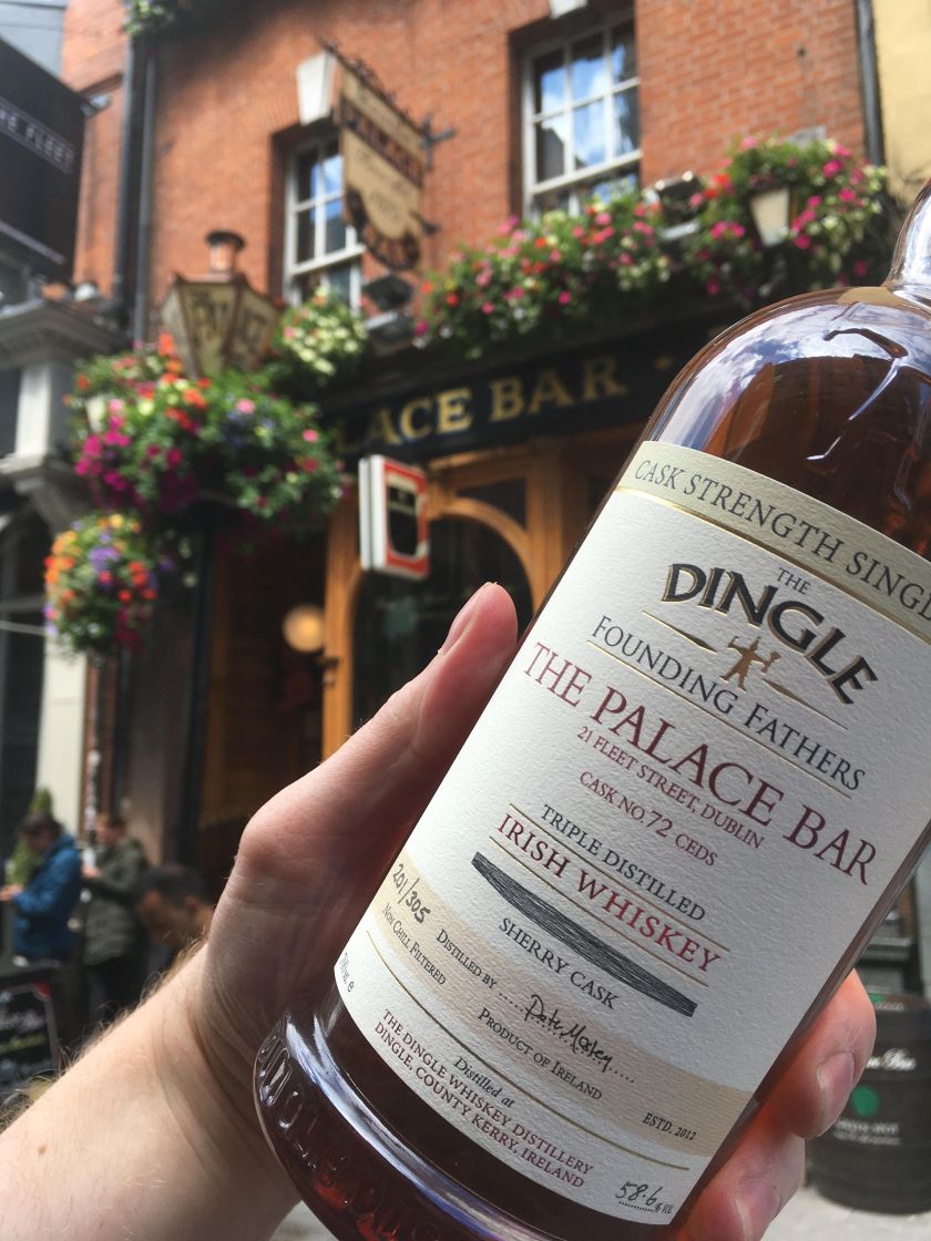 Dingle Whiskey and The Palace Bar. Two iconic names in the Irish Whiskey Industry. The Palace is easily one of my favorite pubs in Dublin. Fantastic decor, relaxed atmosphere, knowledgeable staff and a mega whiskey selection. Then you have Dingle Whiskey which has carved out it’s position as one of the most sought after whiskeys in Ireland. As two powerhouses of the industry it was bound to happen that the two would combine in the form of a Palace Bar Founding Fathers Cask!! Releasing today with a very small allocation of bottles for public sale, Willie Aherne told me this morning that he was “hugely proud to be the first (*Public*) house in Dublin to launch a Dingle Founding Fathers Cask”. It has been the culmination of months of discussion with a friend of The Palace Bar whom the cask was acquired from.